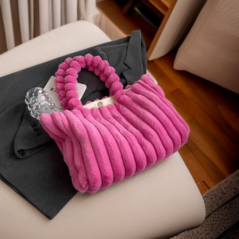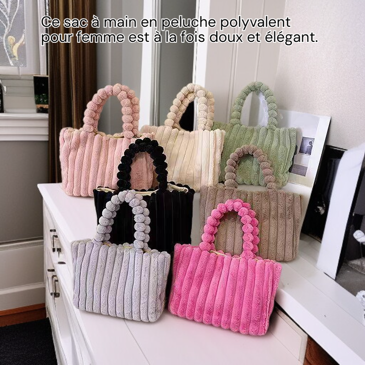 ● Ce sac à main en peluche polyvalent pour femme allie douceur et style, offrant une touche tendance et cocooning à toutes vos tenues du quotidien.