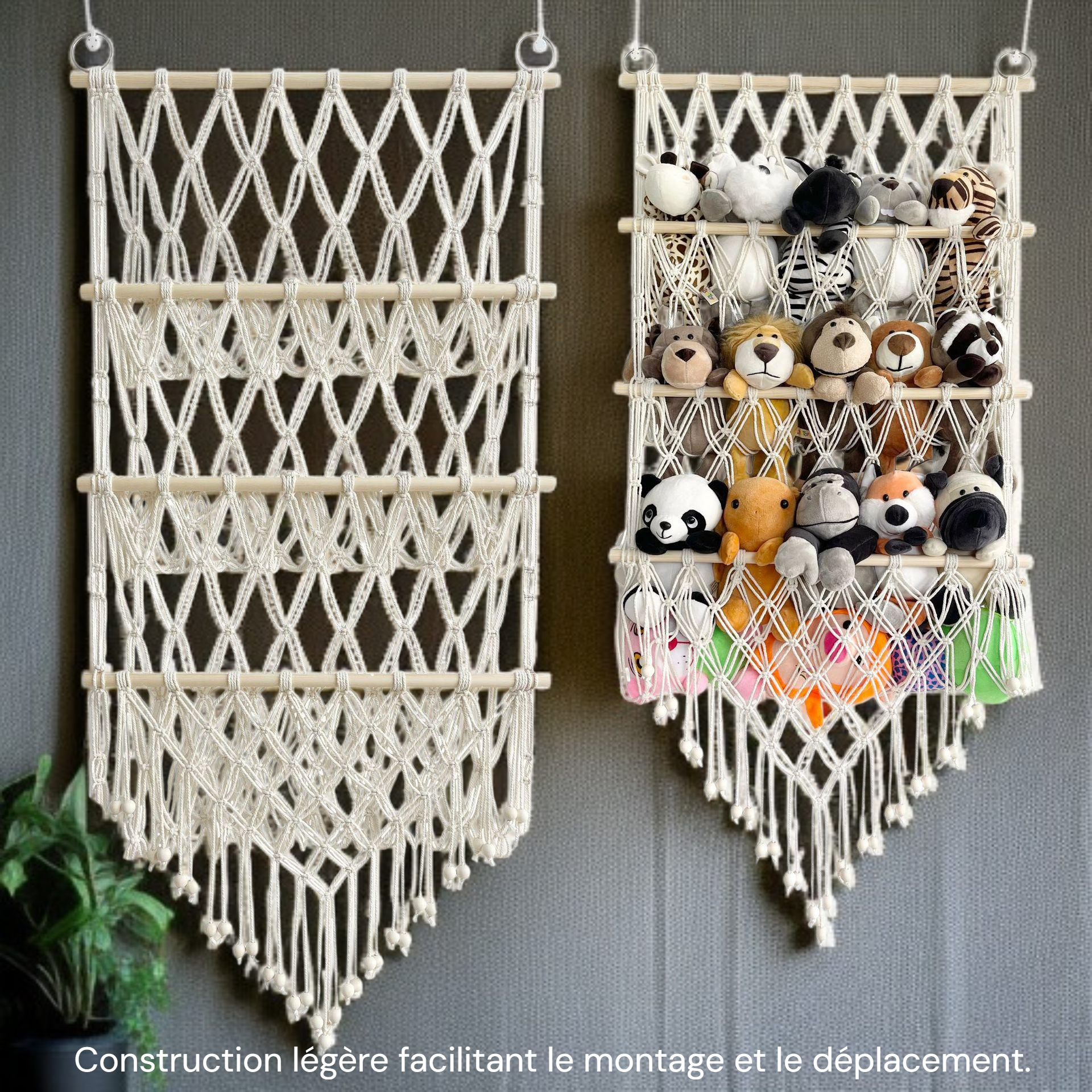 ● Filet transparent permettant de visualiser rapidement le contenu, facilitant le choix des jouets et encourageant un environnement ordonné et agréable.